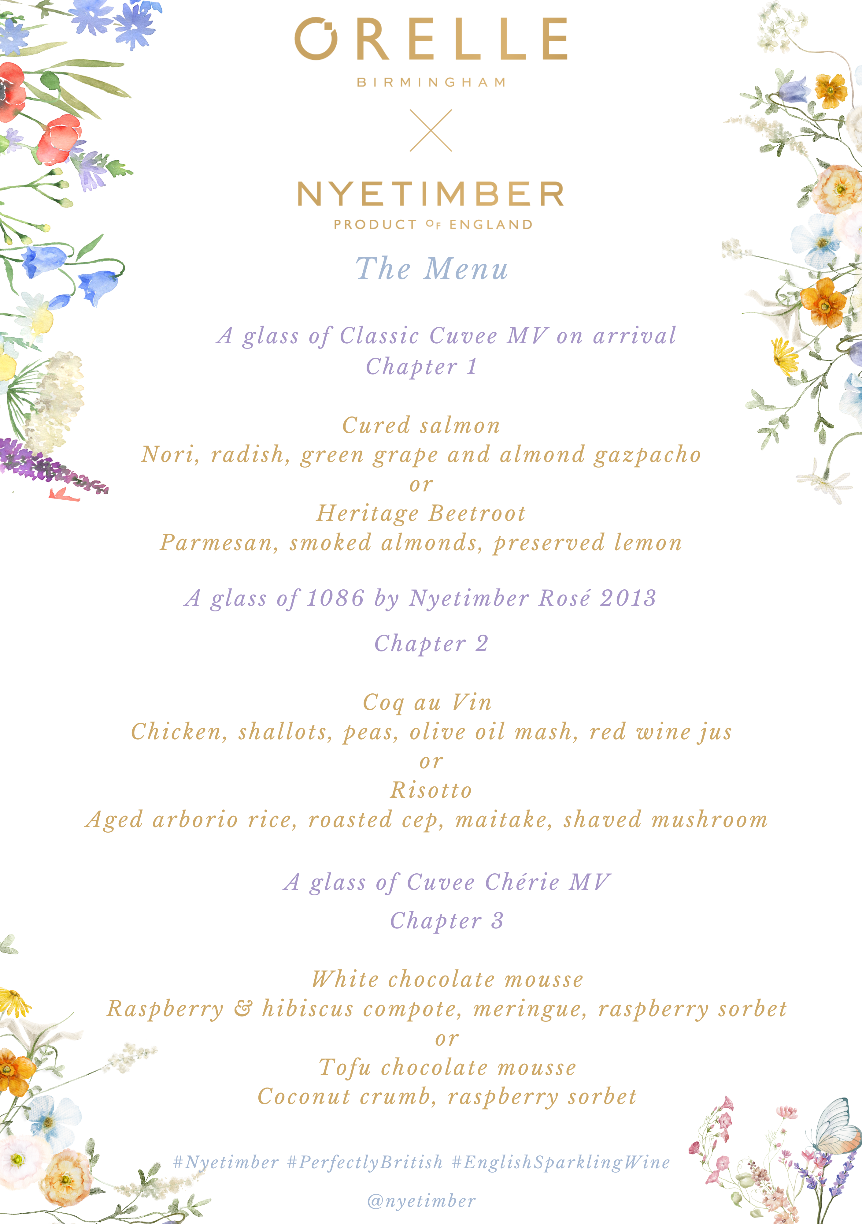 Our event will include a warm welcome into our Private Dining Room with your first glass of Nyetimber, an immersive session with a Nyetimber Brand Ambassador, with a flavour-pairing explanation to explore the relationship between both your food and drinks and more!
